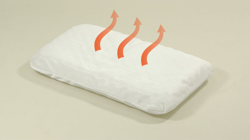 高反発ファイバー素材は通気性の高さから、熱を逃がしてくれます。熱がしっかり逃げてくれることで、体温が十分に下がり、結果的に質の高い睡眠を実現。もちろん睡眠時だけでなく、日常的に使うクッションだからこそ、熱がこもらず快適に使用できることは大切なメリットです。