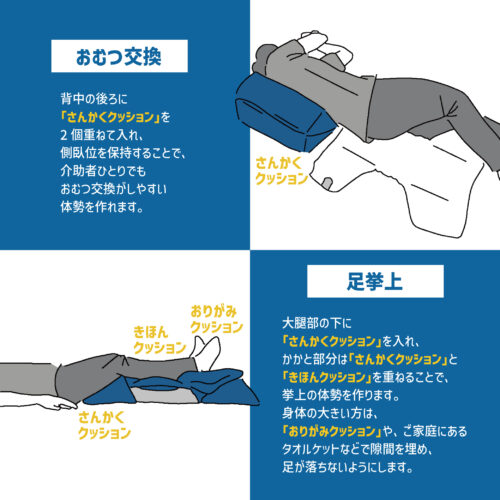 これさえあれば、側臥位・仰臥位・拘縮・おむつ交換・足挙上といった、